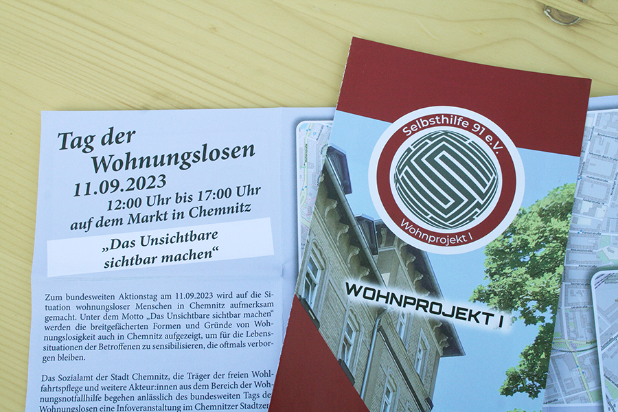Zu diesem Aktionstag gab es am Hauptmarkt in der Chemnitzer Innenstadt eine Infoveranstaltung mit verschiedenen Ständen, zu welcher auch wir mit vertreten waren. Zudem luden alle Einrichtungen der Wohnungsnotfallhilfe zur Besichtigung und regem Austausch ein. So öffnete auch unser Wohnprojekt I die Türen für alle interessierten Besucher und stand als Ansprechpartner für offene Fragen zur Verfügung.